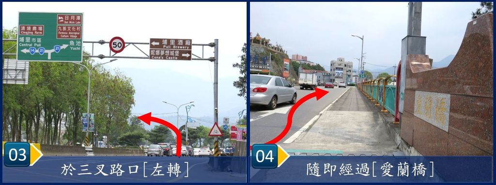 直行後看到三叉路口處 [左轉]往埔里方向,隨即經過[愛蘭橋]