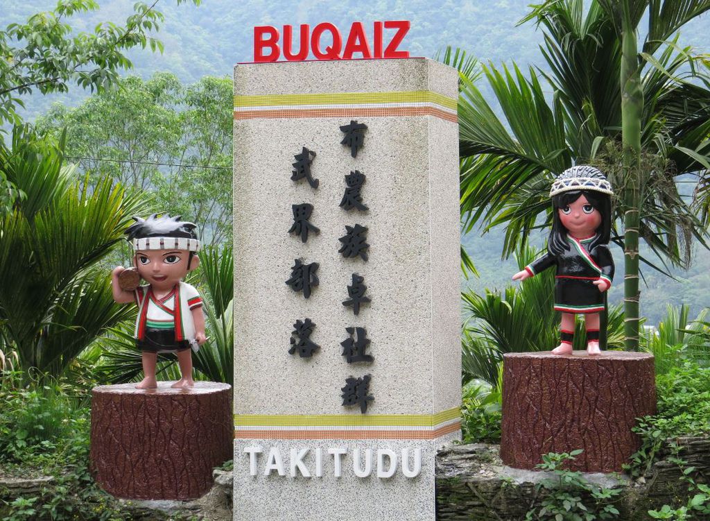 武界部落的入口處,原牌樓已改成很可愛的布農族人偶,歡迎蒞臨喔
