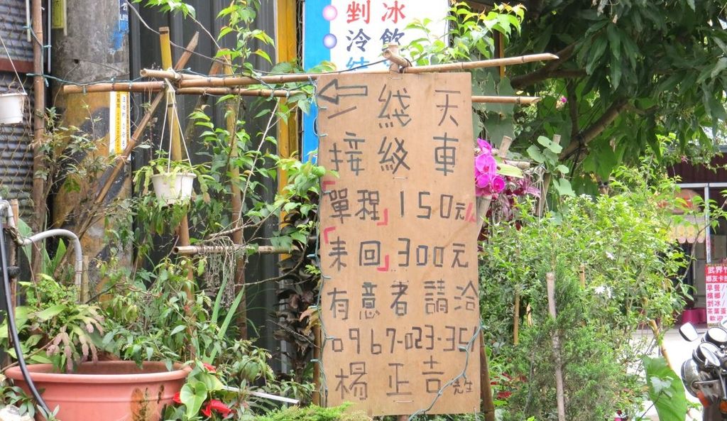 因為武界有一處景點[一線天],前往時,因需要車輛行駛於河床上並跨越溪流,一般轎車無法前往,只有四輪傳動及改過底盤高度的車輛可行,當地居民有提供此項收費服務,如下 :