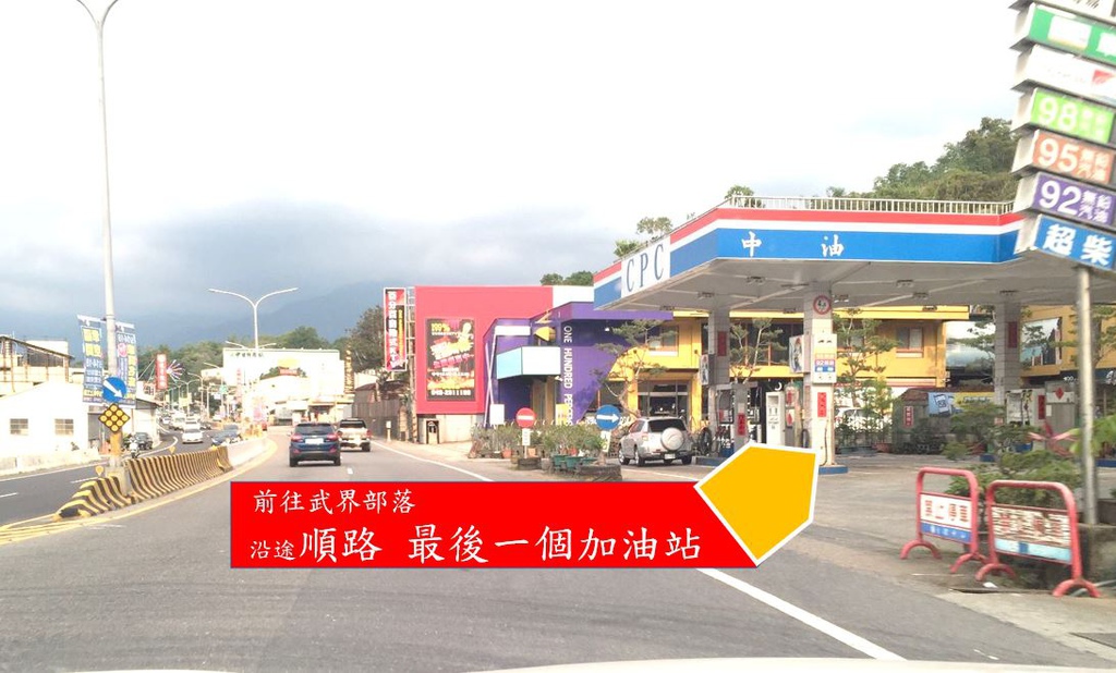 註:直行約2分鐘有[加油站],此處加油站是往武界沿途順路的最後一個加油站,建議保有30%以上油箱喔~開山路比較耗油,加了油再上武界比較安全